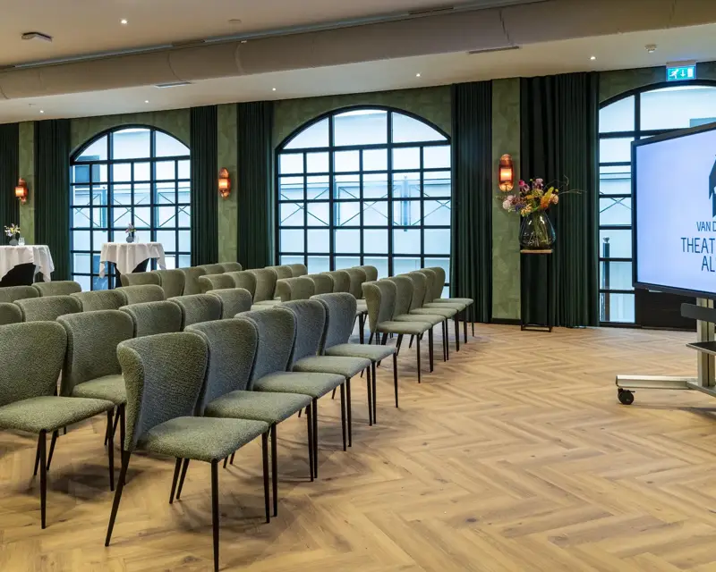 Deze ruimte zaal is geschikt voor onder andere congressen, symposia en presentaties. De zaal heeft verschillende mogelijkheden in opstellingen en is geschikt voor een gezelschap van maximaal 125 personen. Gedurende uw bijeenkomst staat er een gastheer/-vrouw tot uw beschikking.